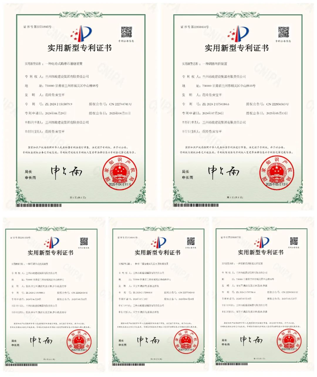 近日,蘭州市政建設集團在科技創新領域捷報頻傳,成果集中涌現。在省級工法認定方面,公司編寫的“高性能水磨石地面快速固化施工工法”與“城市人行道三面坡花崗巖盲道口預加工快速安裝施工工法”兩項工法榮獲2024年度甘肅省工程建設省級工法。質量管理領域,公司“提高門窗預留洞口定位合格率”項目與“提高直埋保溫鋼螺旋熱力管道焊口合格率”項目在2025年度甘肅省工程建設質量管理小組競賽中分獲二類、三類成果獎。專利創新方面更是成果喜人,公司新獲“一種水下灌注樁成孔垂直度檢測裝置”“一種電動式路緣石灌縫裝置”“一種可調式托線裝置”“一種鋼筋彎折輔助裝置”“一種裝配式鋼筋籠定位裝置”5項國家實用新型專利授權。截至目前,已累計取得國家發明專利1項、國家實用新型專利35項。